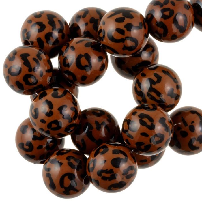 Acrylic Beads Opaque Leopard Print (15 mm) Copper Brown (25 pcs)