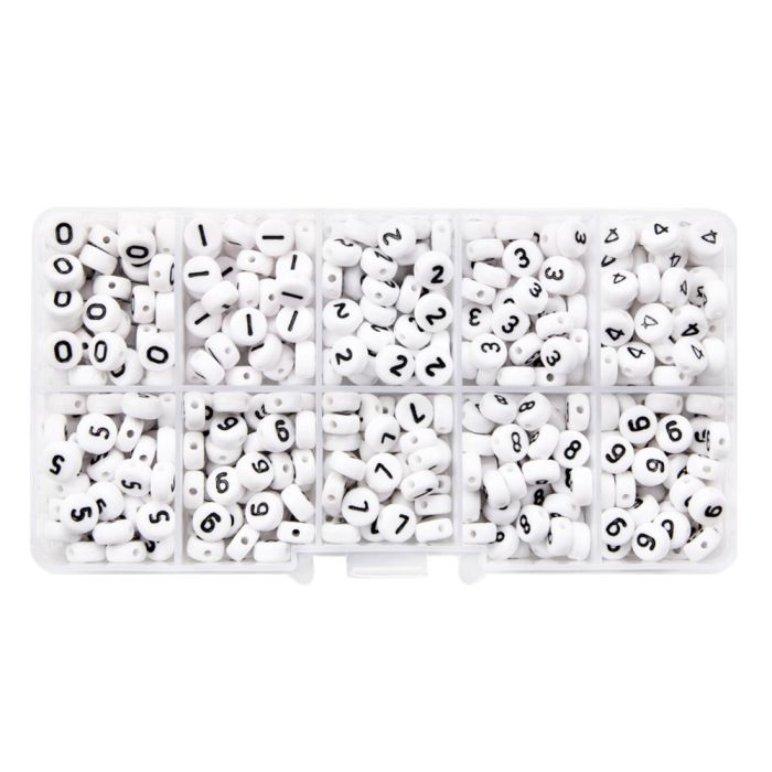 Bead Kit - Acrylic Number Beads (7 x 4 mm) White-Black (50 beads per number)