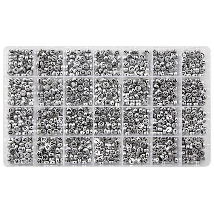 Bead Kit XL - Letter Beads A/Z (7 x 3.5 mm) Silver-Black (35 beads per letter)