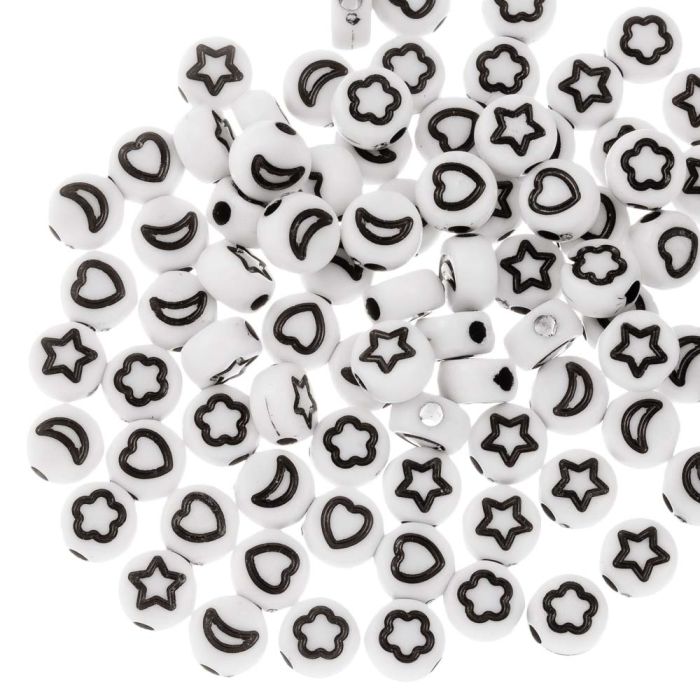 Bead Mix - Acrylic Beads (7 x 4 mm) White-Black (50 pcs)