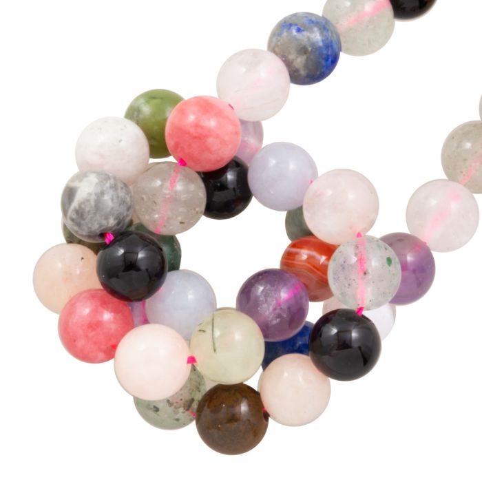 These beads may contain natural Red Agate, Black Obsidian, Sodalite, Amethyst, Amazonite, Rose Quartz, Rhodonite, Striped Agate.