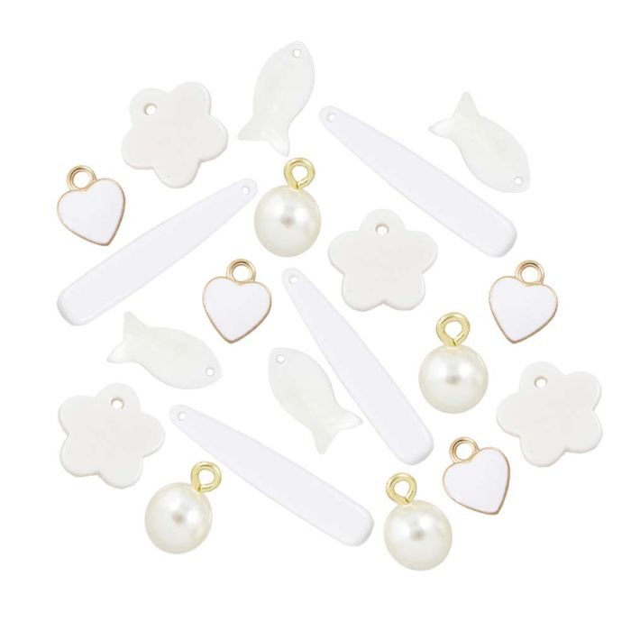 Charm Mix Acrylic & Metal (12 - 39 x 6 - 10 mm) White-Gold (20 pcs)