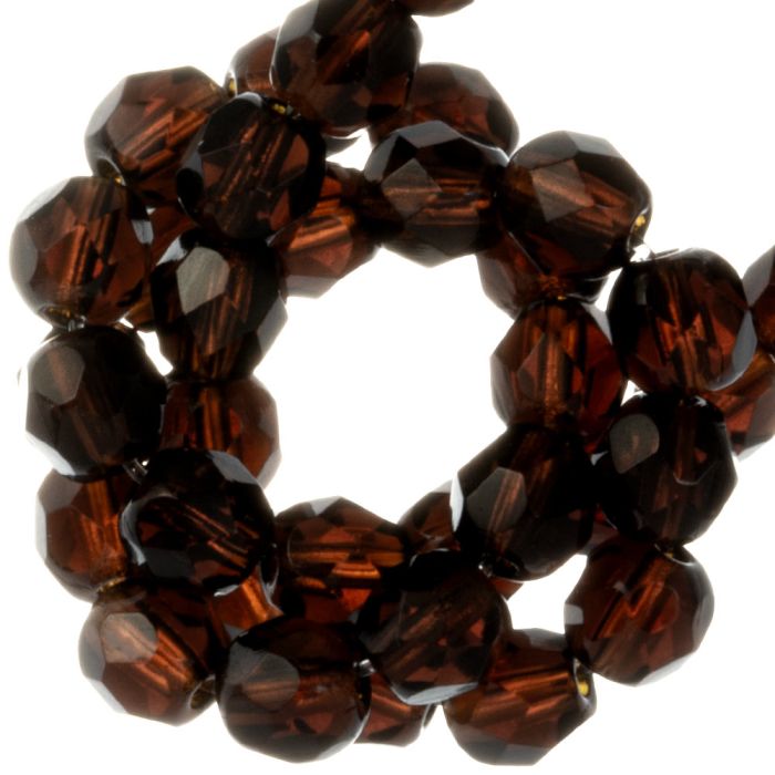 Czech Fire Polished Faceted Beads (4 mm) Dark Topaz (50 pcs)