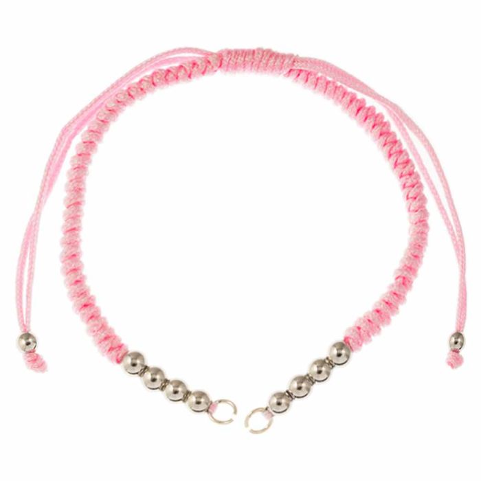 DIY Bracelet- Braided Nylon Cord with Metal Beads Adjustable (26 cm) Pink - Antique Silver (1pcs)
