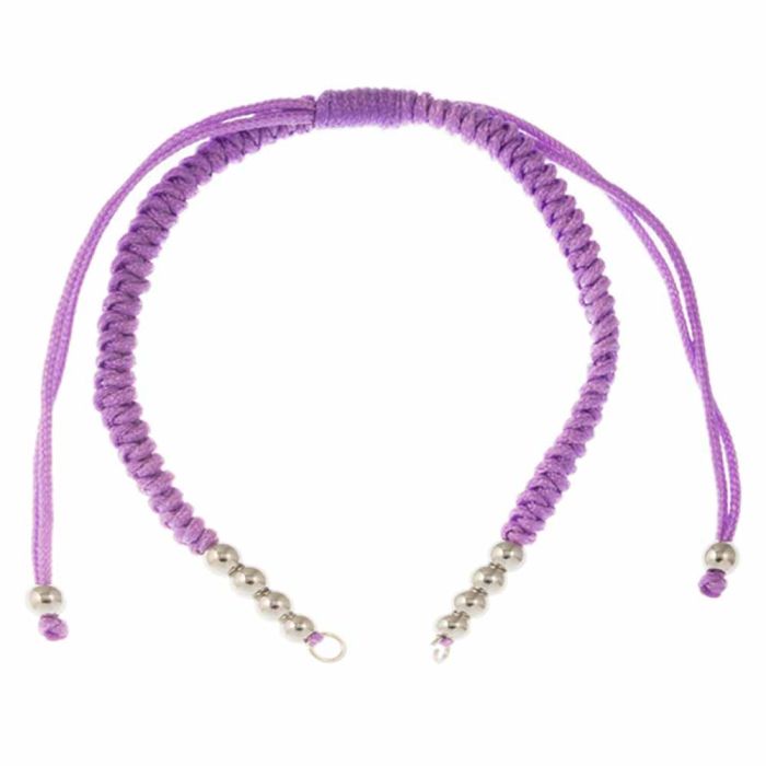 DIY Bracelet- Braided Nylon Cord with Metal Beads Adjustable (26 cm) Purple - Antique Silver (1pcs)