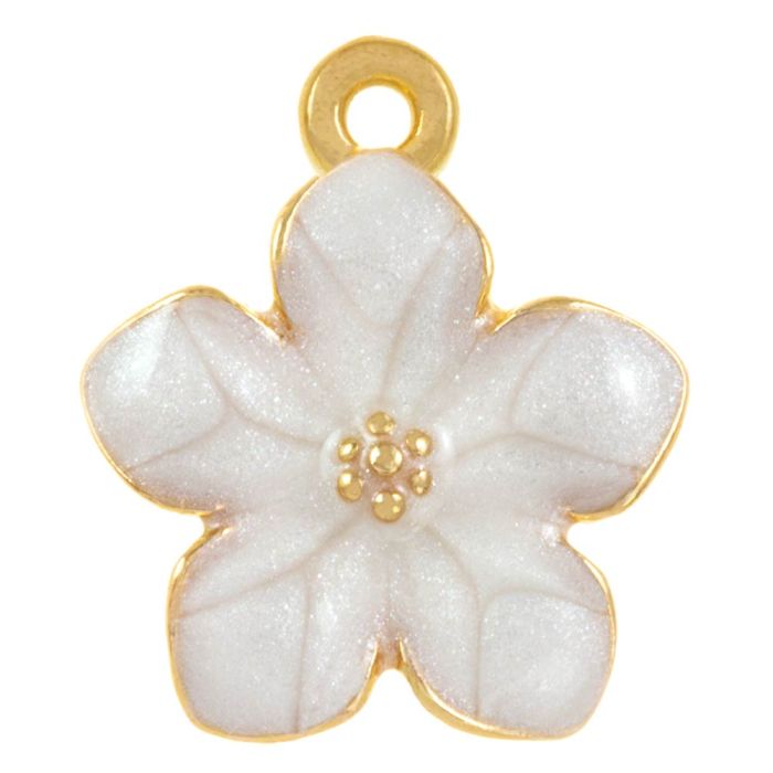 Enamel Charm Flower (17 x 14 x 2.5 mm) Pearl White (3 pcs)