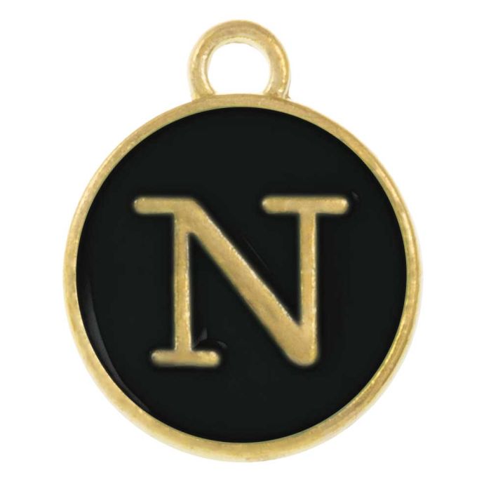 Enamel Charm Letter N (14 x 12 x 2 mm) Black (1 pcs)