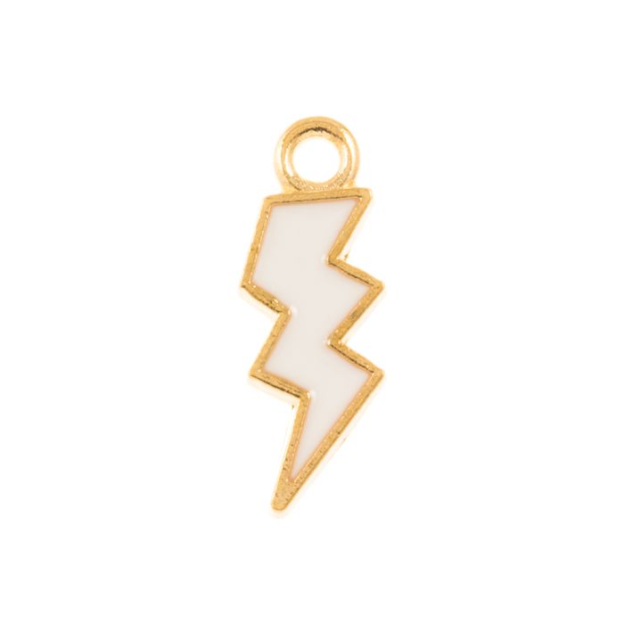 Enamel Charm Lightning (20 x 7 x 1.5 mm) White-Gold (5 pcs)