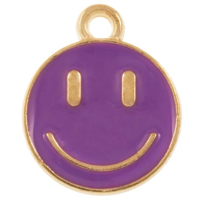 Enamel Charm Smiley Face (14.5 x 12 x 1.5 mm) Purple (5 pcs)