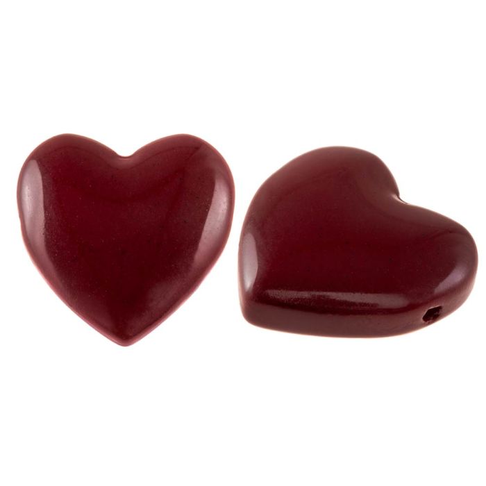 Glass Beads Hearts (24 x 24 x 9 mm) Burgundy Red (2 pcs)