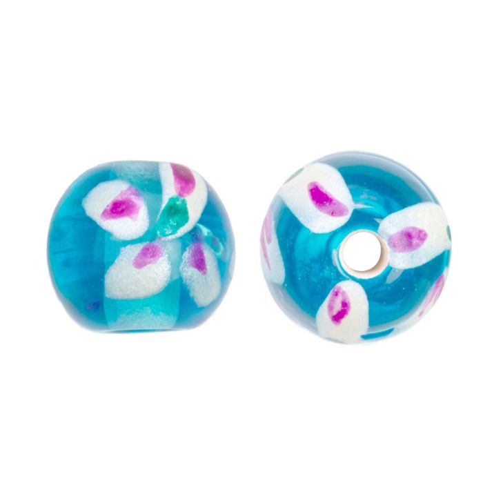 Glass Beads Lampwork Flower (8 x 9 mm) Aqua Blue (5 pcs)