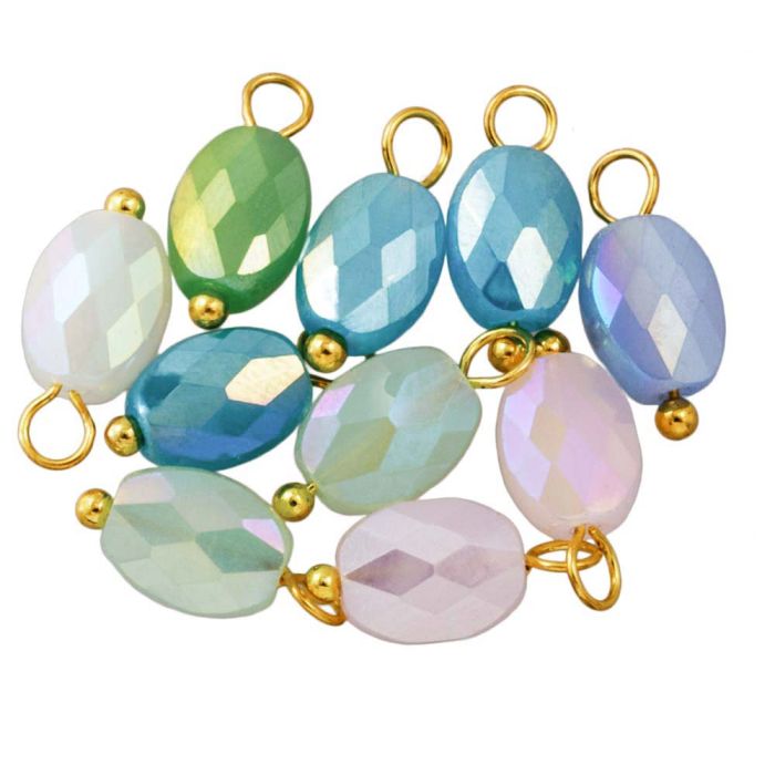 Glass Charm Mix (13 - 14 x 6 - 6.5 x 4 - 4.5 mm) Crystal Turquoise-Gold (10 pcs)