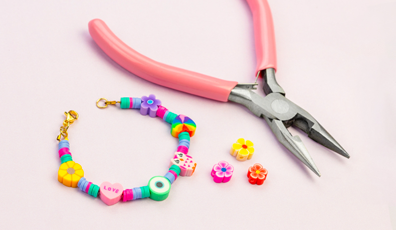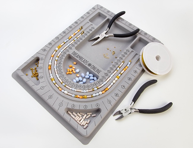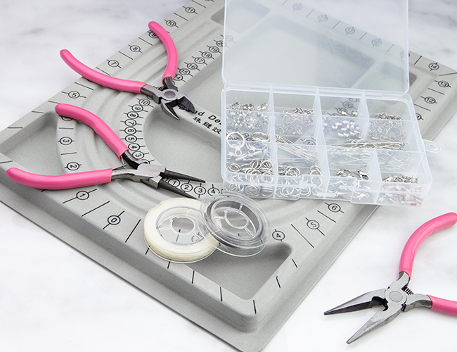 Jewelry pliers and a bead board are indispensable for assembling components and creating jewelry.