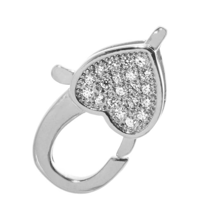 Lobster Clasp Heart Zirconia (17 x 10 x 5 mm) Antique Silver (1 pcs)