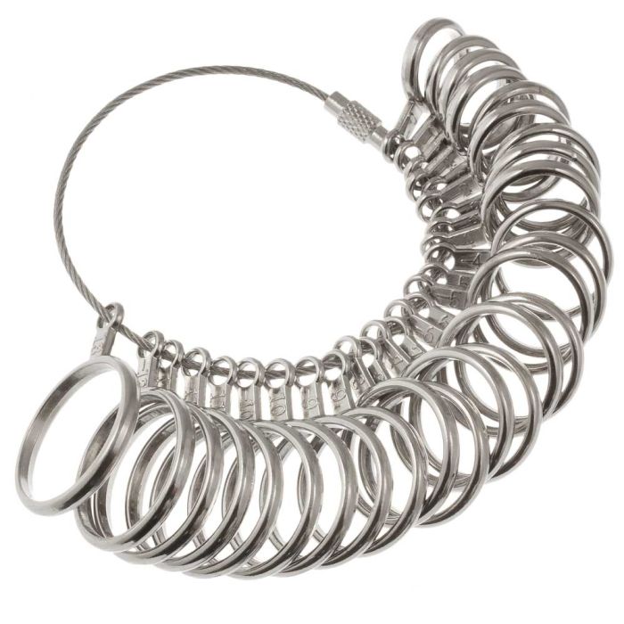 This ring sizer will come in handy when making rings! The set consists of 27 measuring rings with a range from 12 ~ 23 mm. The measuring rings correspond to the US Ring sizes (0-13).