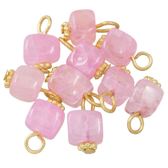Pearl Pink Agate Charm Cube (14 - 16 x 7 - 8 x 6 - 7.5 mm) Gold (10 pcs)