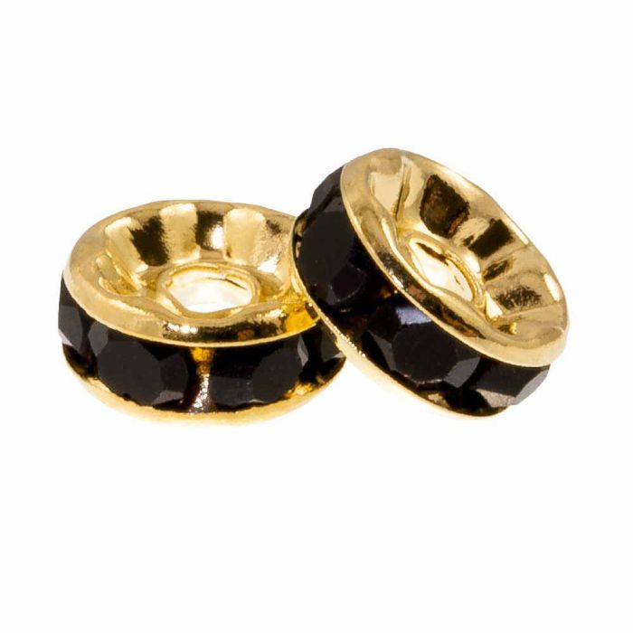 Rhinestone Spacer Beads (4 x 2 mm) Black - Gold (10 pcs)