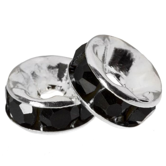 Rhinestone Spacer Beads (8 x 4 mm) Black (10 pcs)