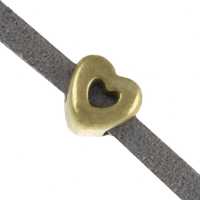 Slider Bead Heart (inner size 3 x 2 mm) Bronze (10 pcs)