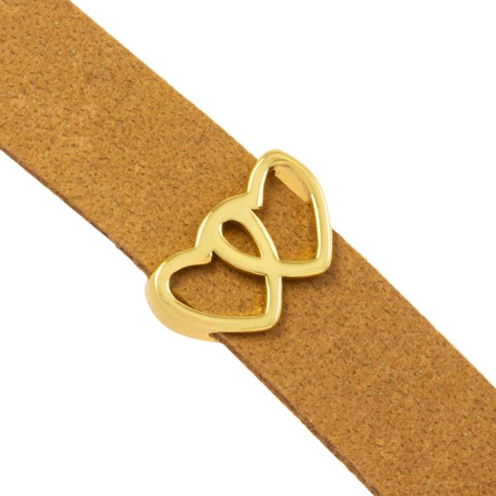 Slider Bead Hearts (inner size 10 x 2 mm) Gold (2 pcs)