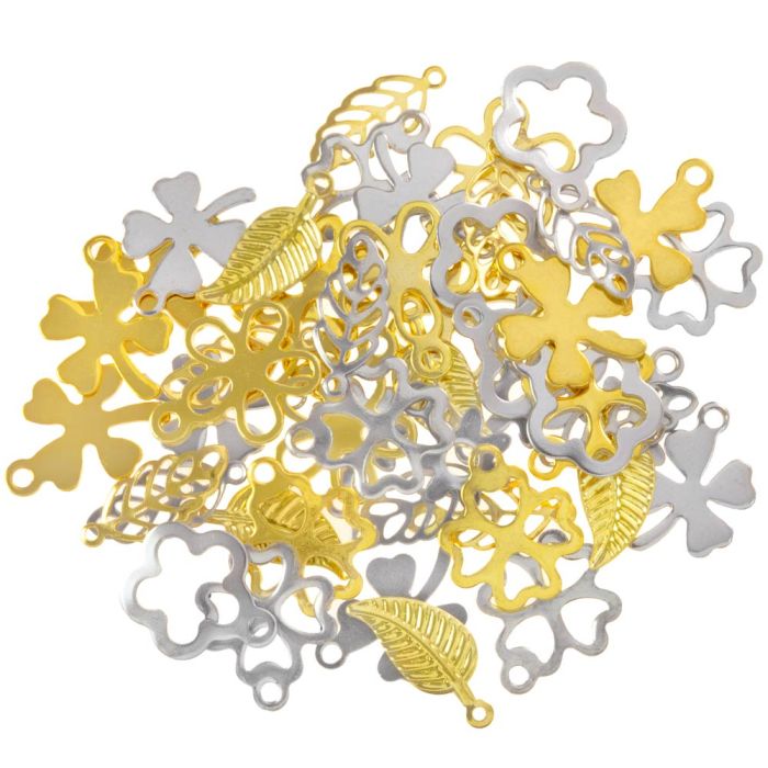 Stainless Steel Charm Mix (10.7 - 14 x 6 - 12.5 x 0.5 - 0.9 mm) Mix Color (50 pcs)