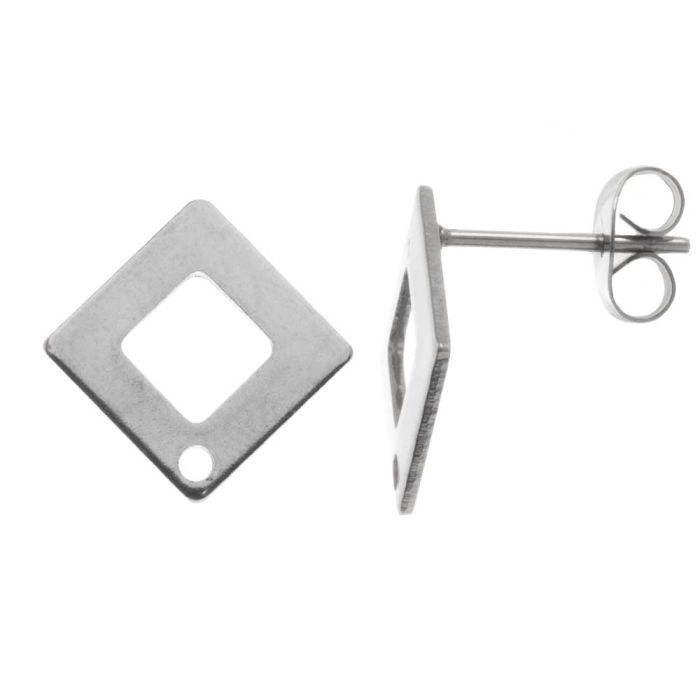 Stainless Steel Stud Earrings (14 x 14 mm) Antique Silver (4 pcs)