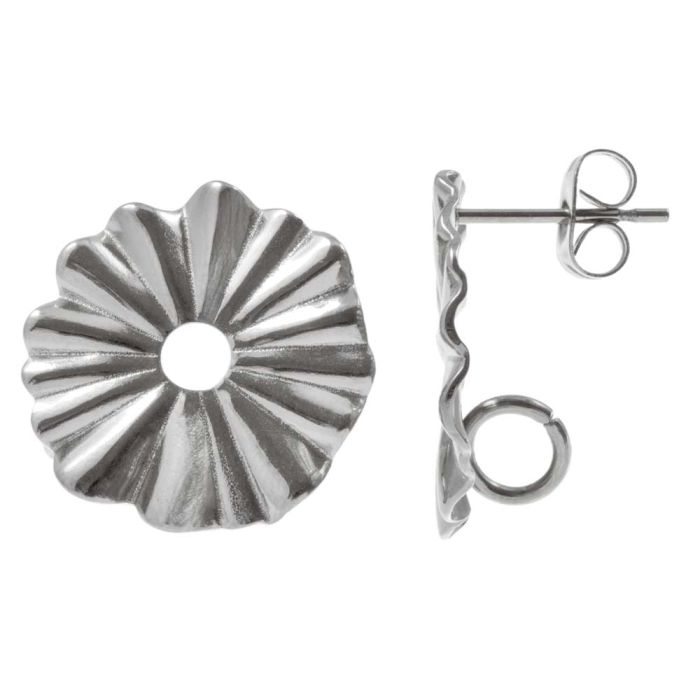 Stainless Steel Stud Earrings (19 x 18 mm) Antique Silver (4 pcs)
