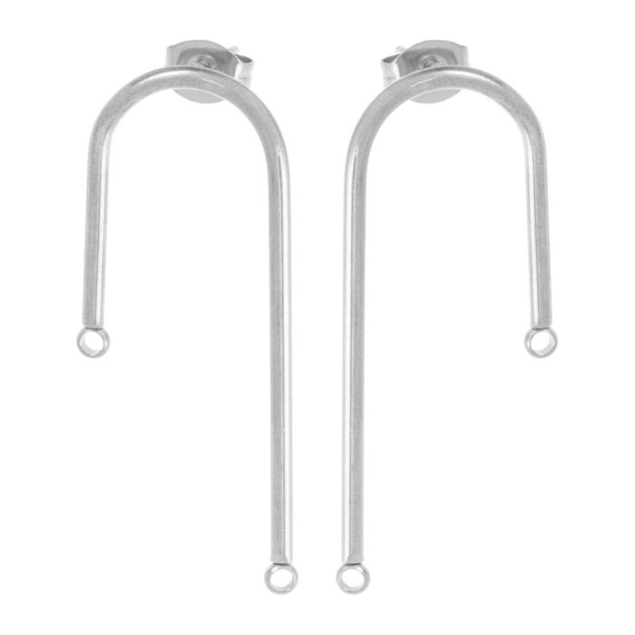 Stainless Steel Stud Earrings (37 x 13 mm) Antique Silver (2 pcs)