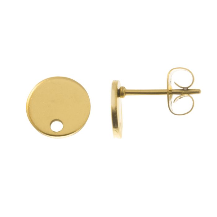 Stainless Steel Stud Earrings Flat Round (10 x 1 mm) Gold (4 pcs)