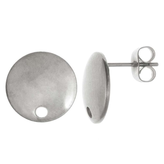 Stainless Steel Stud Earrings Flat Round (10 x 2 mm) Antique Silver (4 pcs)