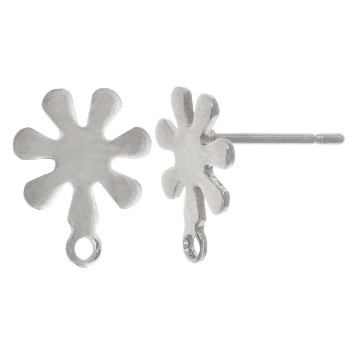 Stainless Steel Stud Earrings Flower (11 x 9 mm) Antique Silver (4 pcs)