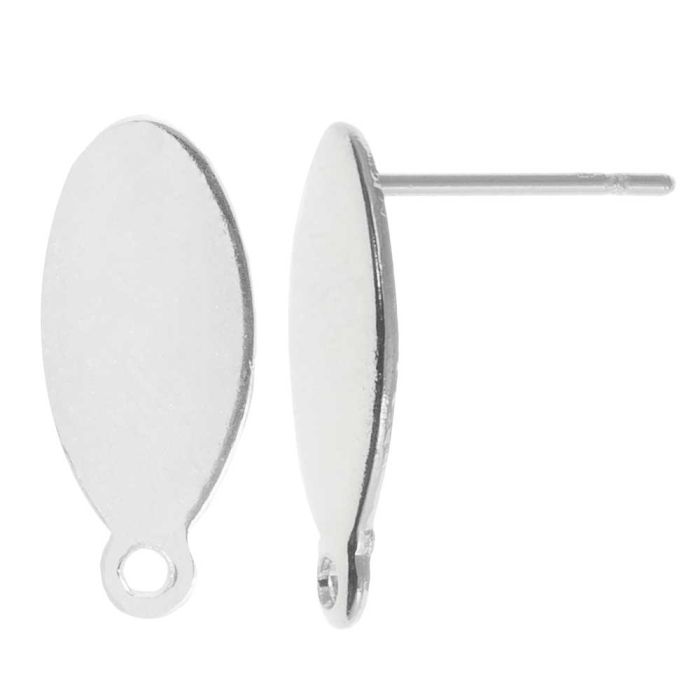Stainless Steel Stud Earrings Oval (15 x 7 mm) Silver (4 pcs)