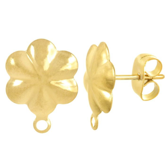 Stainless Steel Stud Flower Earrings (13.5 x 10 mm) Gold (4 pcs)