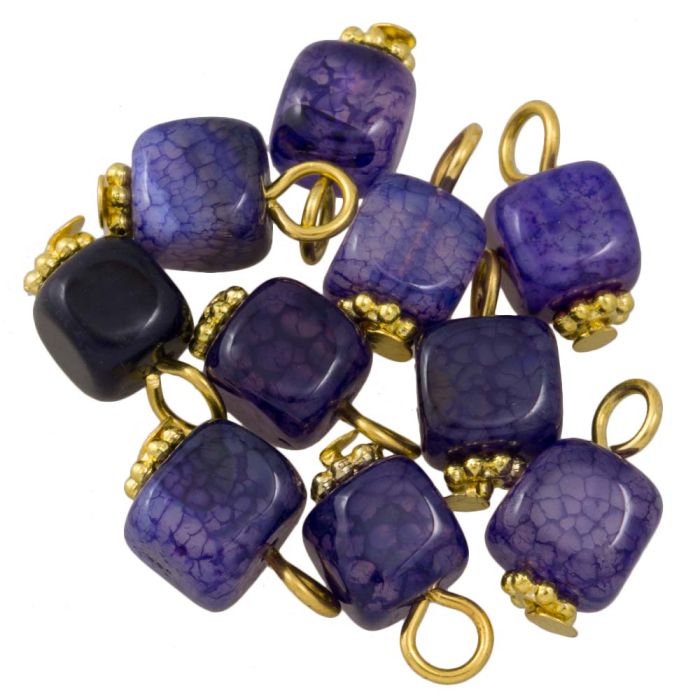 Violet Agate Charm Cube (14 - 16 x 7 - 8 x 6 - 7.5 mm) Gold (10 pcs)