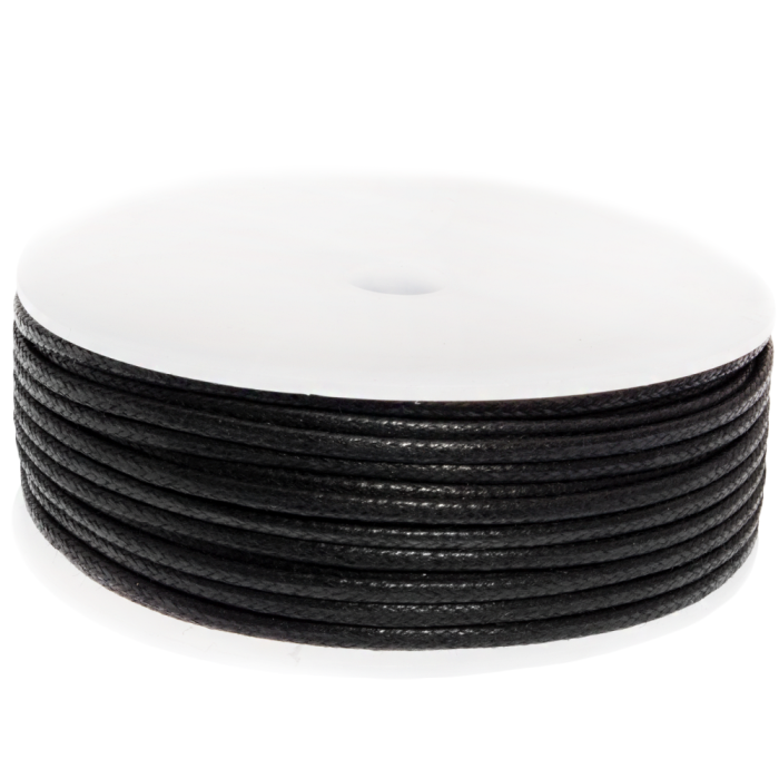 Waxed Cotton Cord (circa 1.5 mm) Black (25 meters)
