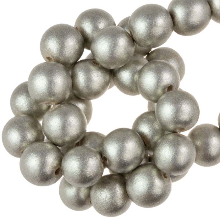 Wooden Beads Metallic Look (10 mm) Champagne Silver (84 pcs)